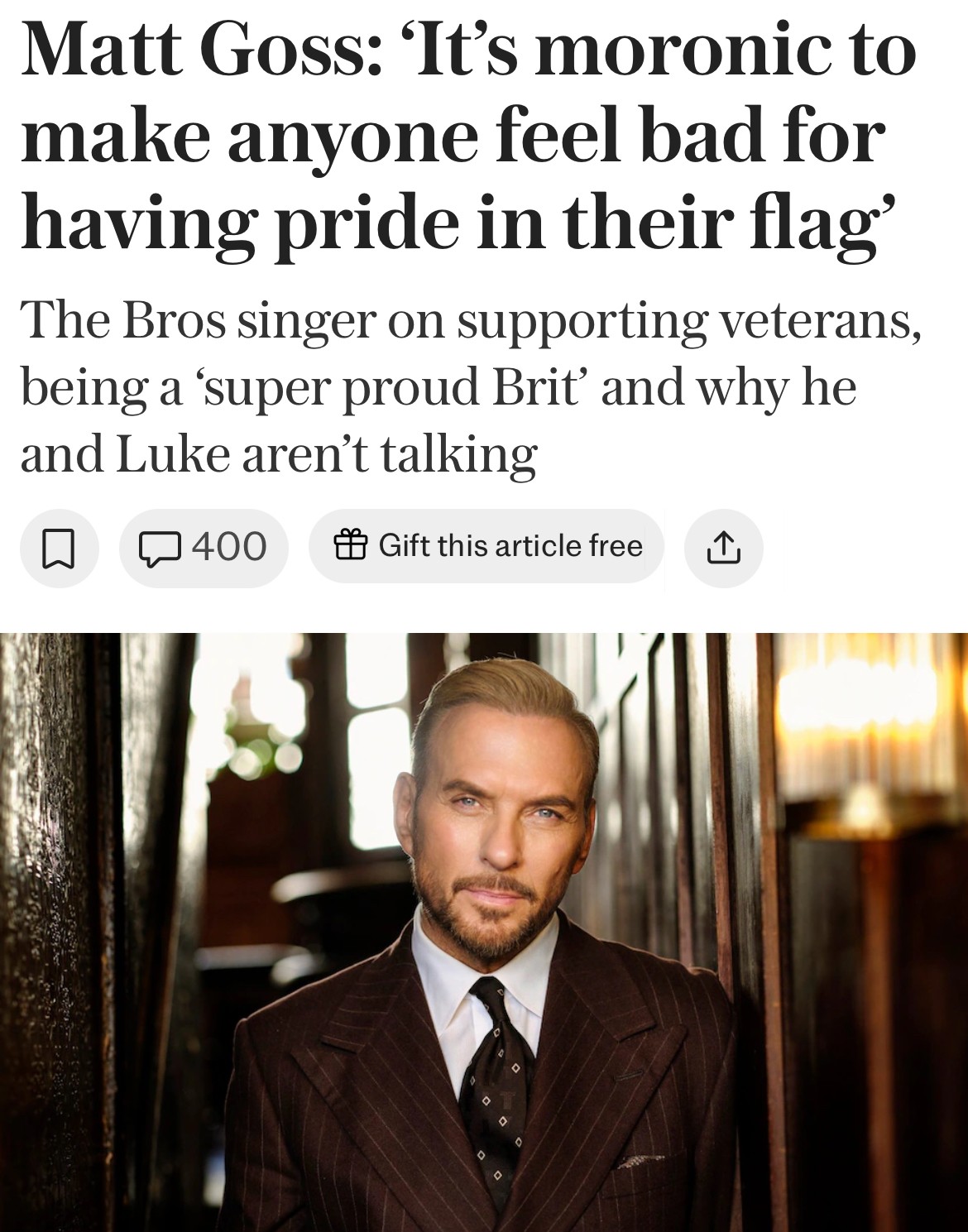 Throughout the interview, Matt shared some very personal reflections from his own life, after reading the article many Telegraph subscribers posted their kind words showing support for Matt.